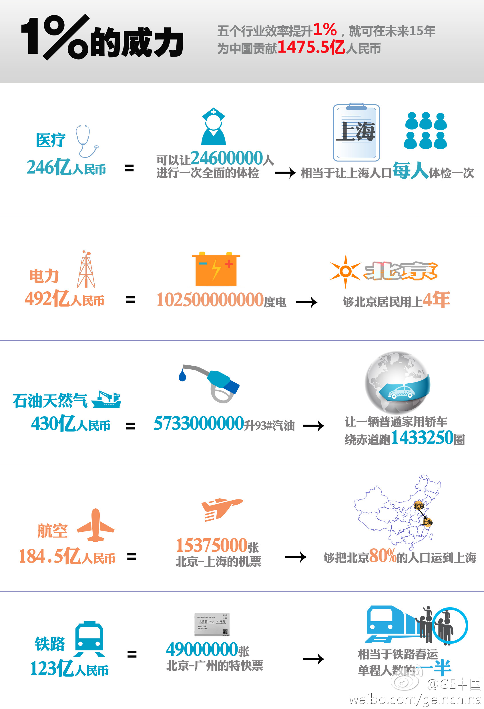 ,五大行业即使1%的效率提升,就能为中国贡献近1500亿人民币;微编认为,每天要是都有1%的粉丝转发微博,是不是就能涨点工资了?在你心里,1%有多大威力?