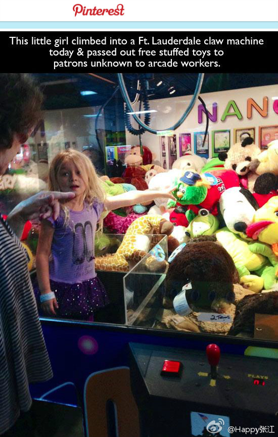 【小萝莉对抓娃娃机的完美的复仇】在游乐场玩抓娃娃屡战屡败后,美国一名小萝莉一怒之下利用身材优势钻进机器,并把里面的娃娃挨个扔进出口送给路人。。。萝莉一边送娃娃一边问:"你要哪个?好嘞!" 正义的小萝莉,伟大的萝宾汉,向你致敬!