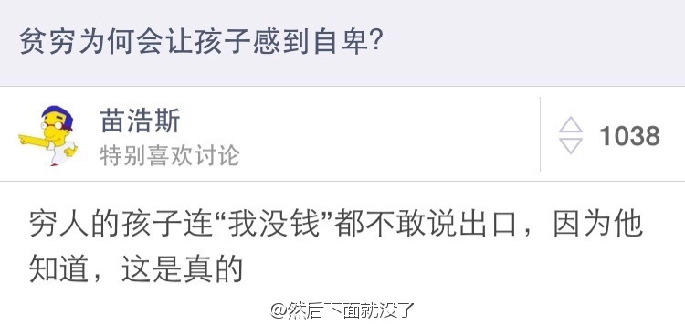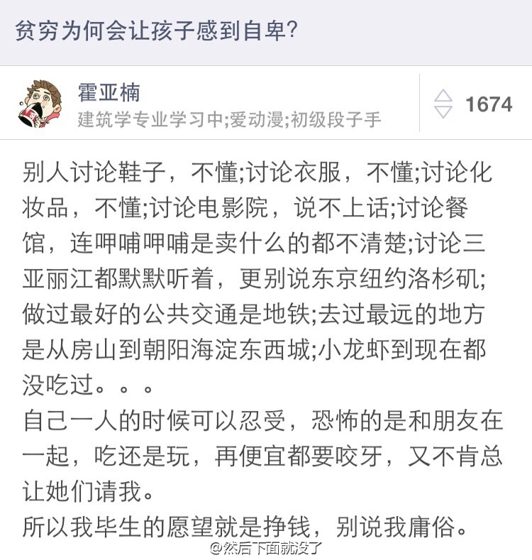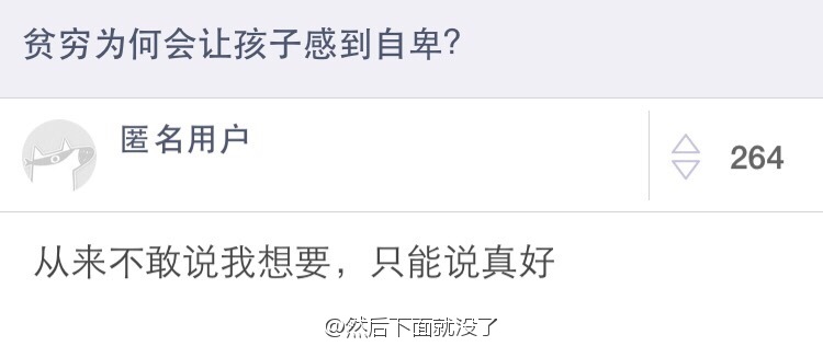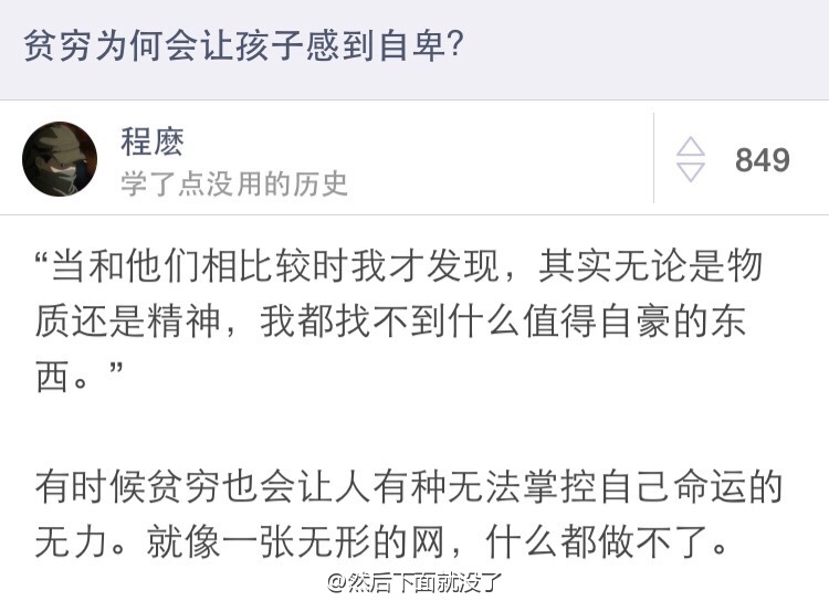 「贫穷为何会让孩子感到自卑?」回答看着就心酸……人生是场马拉松,就算走的路不同终点也是相同,不要因为穷这么一个字就放弃了整场人生。