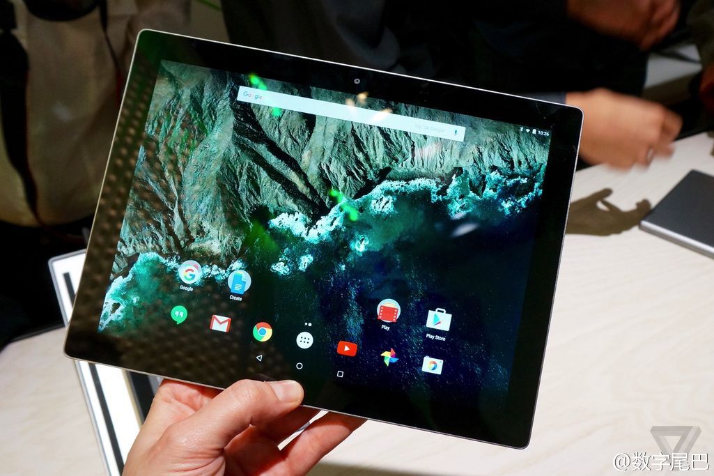 Pixel C 实机照片!10.2 英寸的大平板,可搭配蓝牙可拆卸实体键盘移动办公使用,Pixel C 将会在今年圣诞假期期间正式发售。