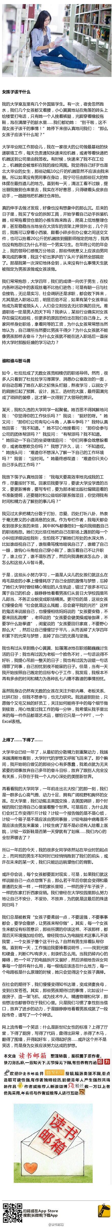 《女孩子该干什么》一位北大才女写的文章,不偏激、不埋怨,很靠谱。
