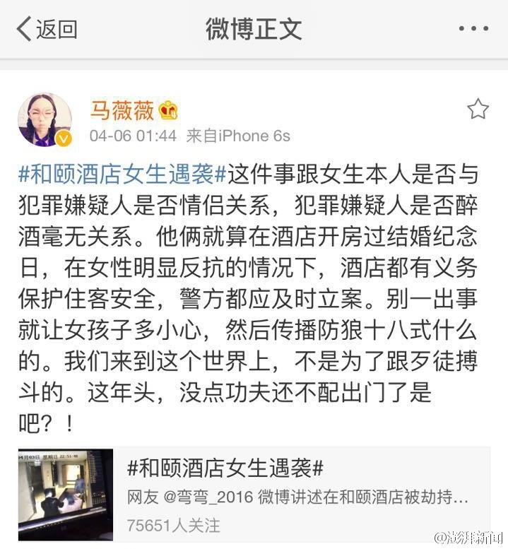 【人民日报:防险不能光靠自救】网上多人开出自救药方,但更大的责任,在坏境,在他救,在一整套提供安全保护的系统。酒店安保、服务员一旦发现暴力端倪或违背女性意愿的强迫行为,必须强力干预。还要破除“家暴外人不该管”的误区。家庭内部暴力也是暴力,在公共场合发生就该管!
