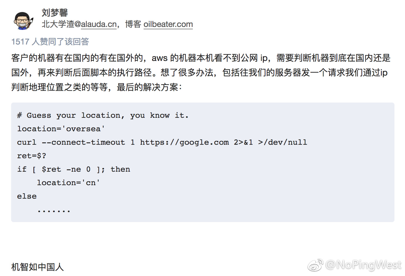 同时作为给NoPingWest的评论发布.