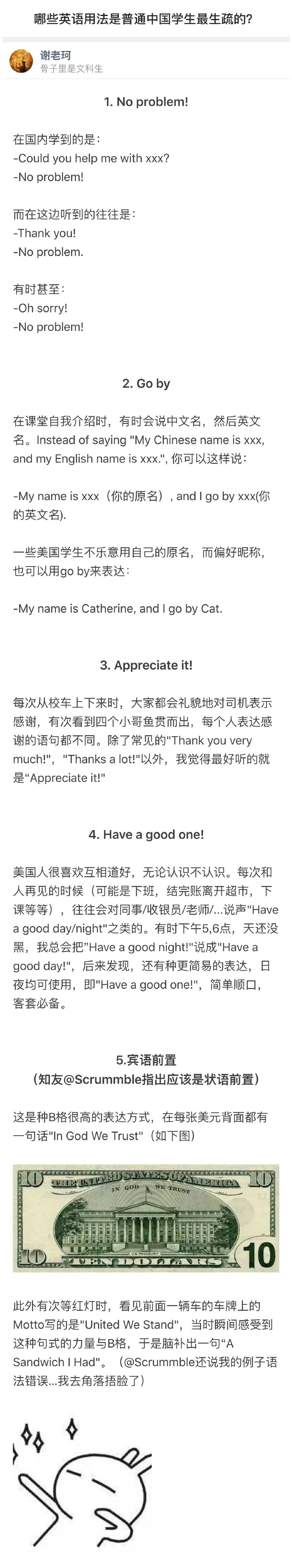 「哪些英语用法是普通中国学生最生疏的?」