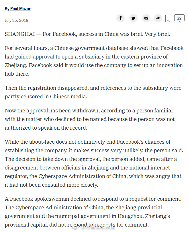 刚看到。。。Facebook入华又黄了。。。Very brief。