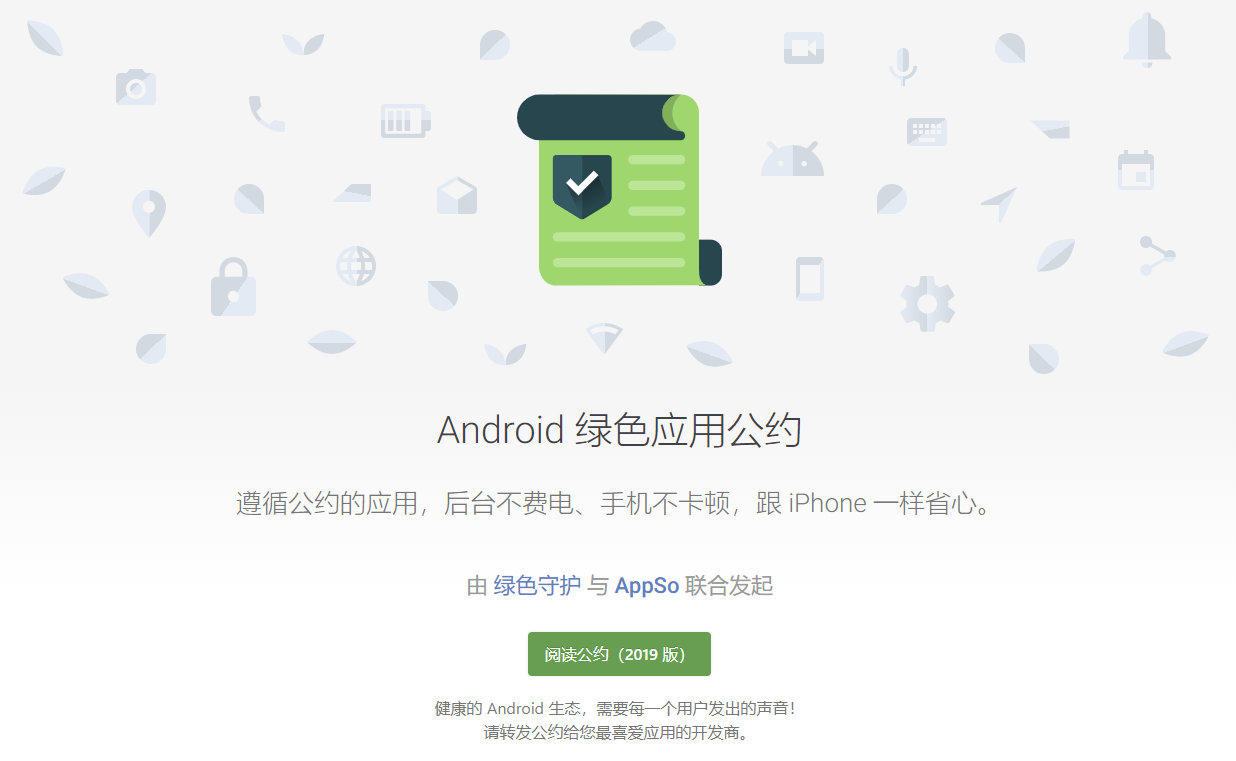 《Android 绿色应用公约》发布第三版,API level 门槛如约升至 26,并将此前建议部分的「避免请求读写外部存储权限」纳入必要要求。2018 年,在信通院的支持和推动下,国内主流应用市场共同发布了 API level 准入要求,大大推进了公约的目标;2019,让我们继续下一段征程!