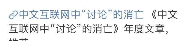 中文世界是网页死得太快,更重要原因不是限制话题而是商业重组(包括服务器)改版,是不耐寂寞、酷爱扎堆。英文的论坛和孤独blog可以存在几十年,但看上几十页的“讨论”也没什么头脑风暴,表面客气的自说自话。斯文和有料是两件事。