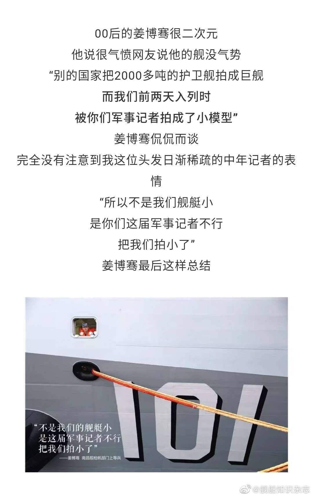 “不是我们舰艇小,是你们这届军事记者不行,把我们拍小了。”——万吨大驱上的上等兵