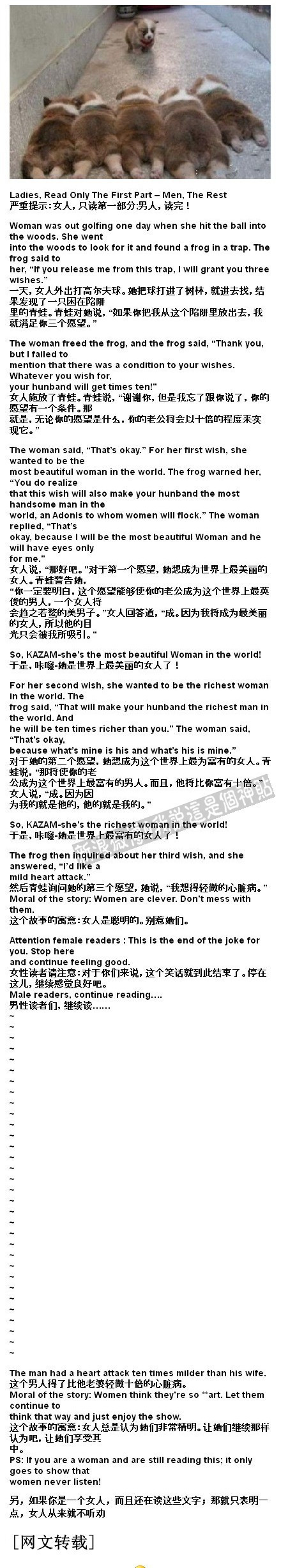 转个笑话,郑重提示!女生看一半,男生全看完! 更多毁坏就在