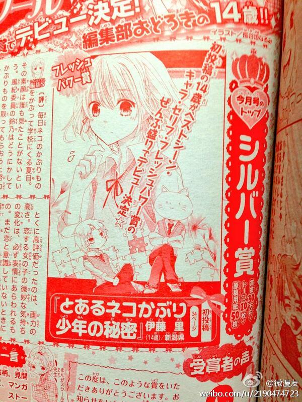 日本新潟县的14岁女生【伊藤里】获得漫画杂志银奖30万日元,已经确认作为漫画家出道