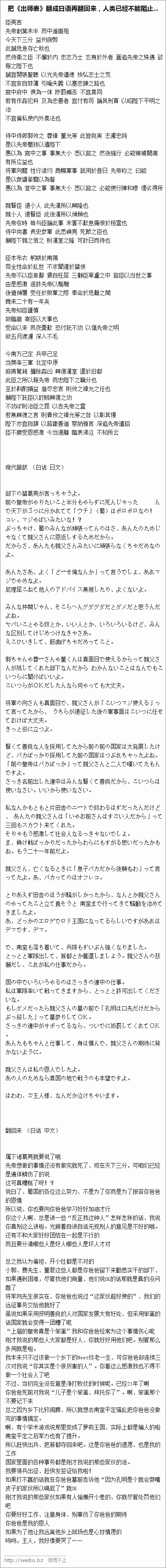 把《出师表》翻成日语再翻回来,人类已经不能阻止...