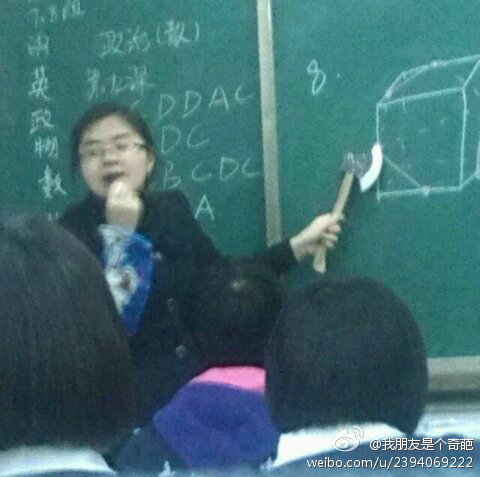 :你知道当学生不听话的时候,从哪个角度砍,才可以致伤不致残吗?这涉及到物理问题