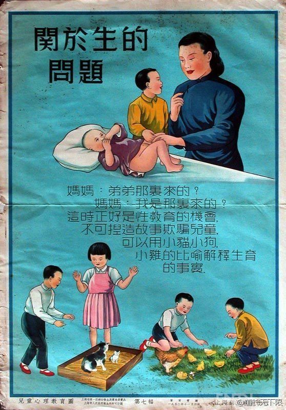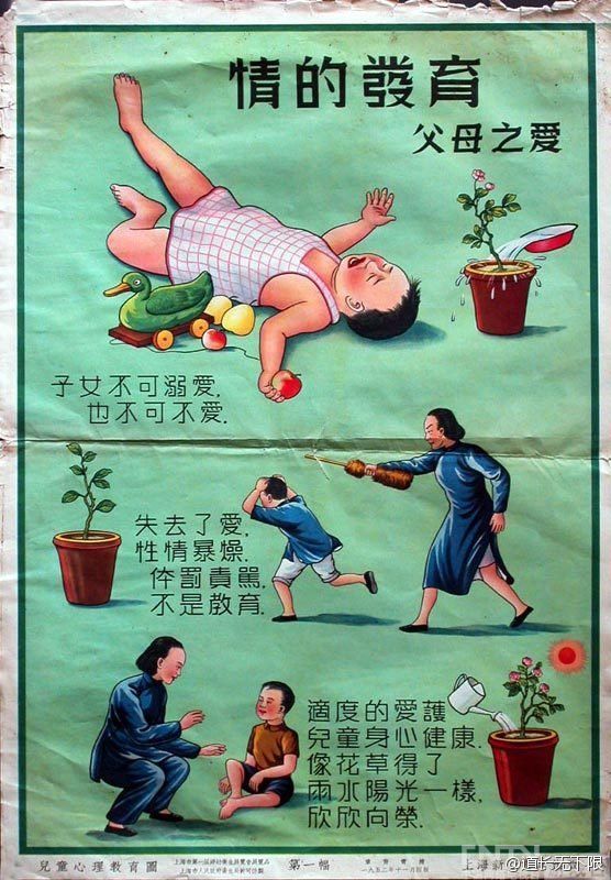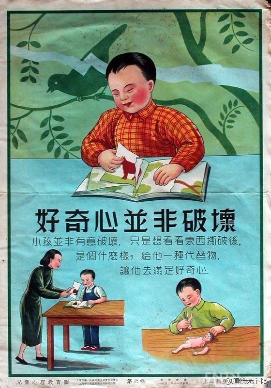 八张1952年的海报,儿童心理教育图,一九五二年上海新亚书店出版,所讨论的理性与健康的教育,在60年后的今天尚未成为常识。