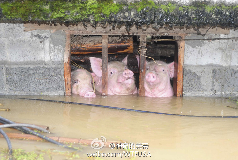总觉得重庆暴雨洪灾这组图里,这张“三只肥猪被困猪圈”的照片,表情各异,让人又是心疼又是想笑……