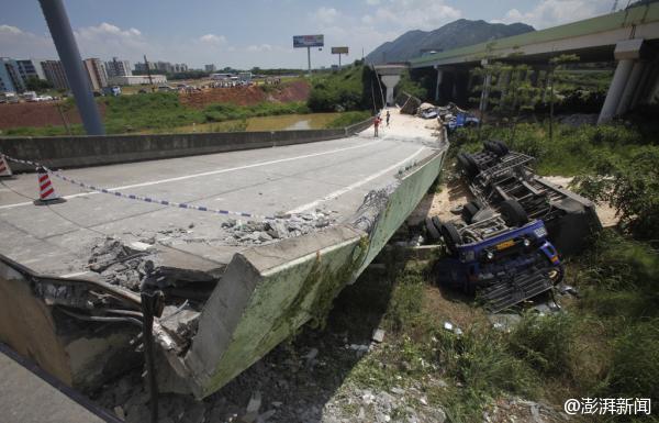【广东高速桥坍塌:70米范围出现4辆重型货车】19日凌晨,G25长深高速一处匝道桥坍塌,致1死4伤。事故通报称,初步判断,怀疑为超载车队所致。事发前,在坍塌的桥面上约70米范围内有4辆装载瓷土的重型货车,明显超出设计规范的规定范围。4辆车中3辆翻出弯桥外侧,1辆侧翻在桥面上。
