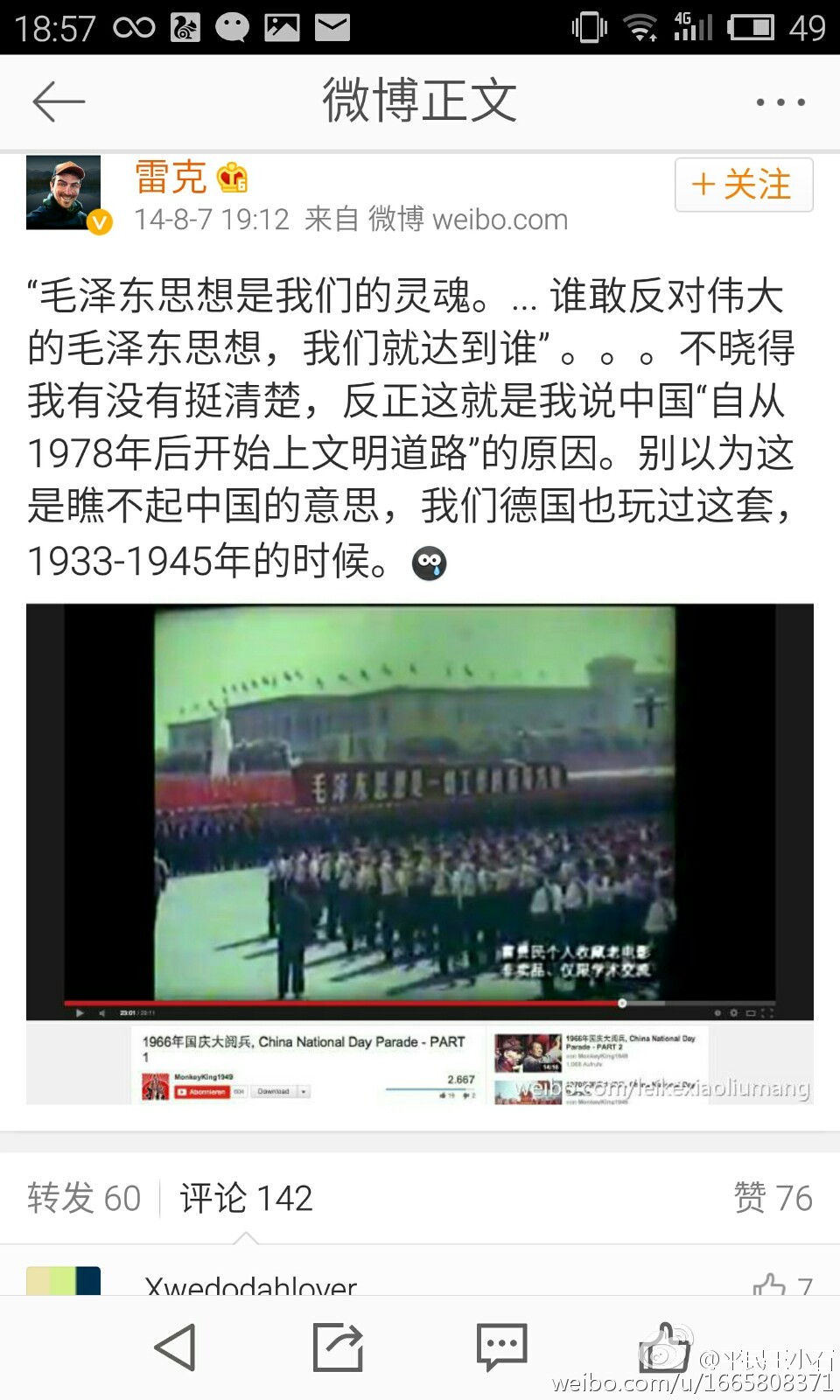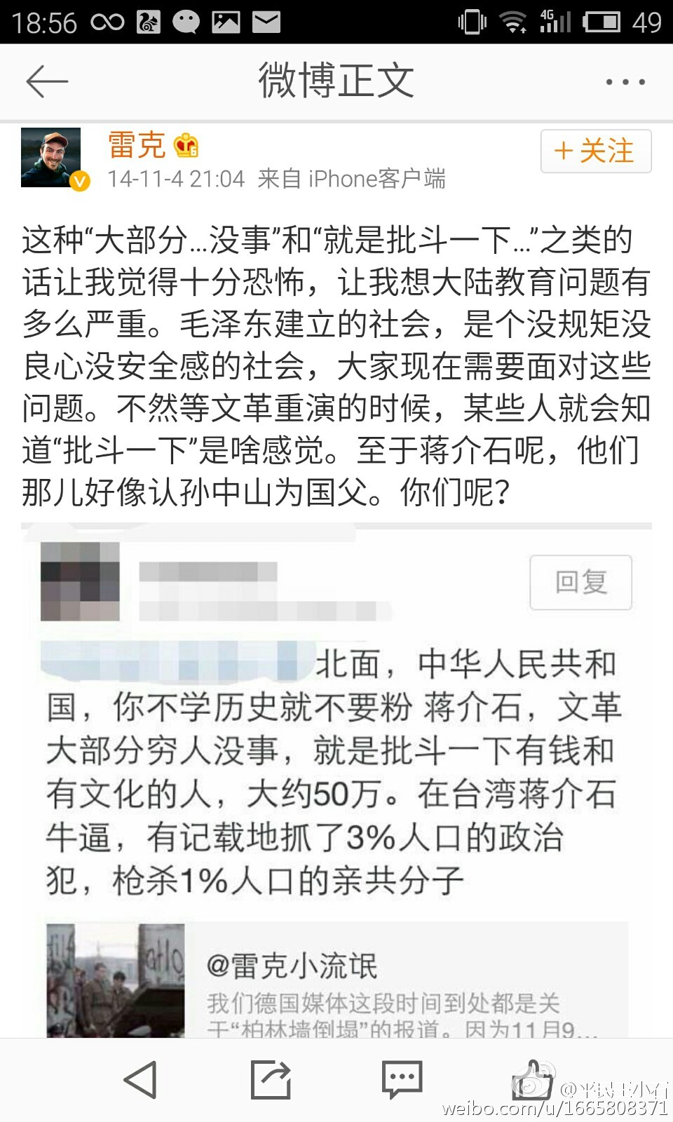 】雷克长期诽谤中国开国领袖毛泽东,适用刑法246条:以暴力或者其他方法公然侮辱他人或者捏造事实诽谤他人,情节严重的,处三年以下有期徒刑、拘役、管制或者剥夺政治权利。前款罪,告诉的才处理,但是严重危害社会秩序和国家利益的除外。就是说可由检察院公诉!