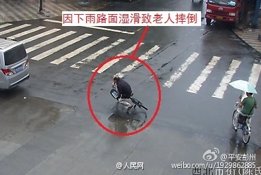 【老人自己摔倒诬陷学生 “天网”监控证清白】