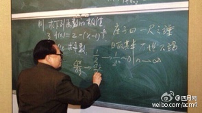 【学霸男神的最高境界:毕业53年当场讲解微积分】2000年某日,江泽民视察北工大,恰逢高数课,高兴的拿起粉笔写道:庄子曰:一尺之锤,日取其半,万世不竭。还用数学式把含义准确表达出来,说这是我们老祖宗极其重要的极限思想,又紧接着给同学们讲导数的概念,并在黑板上写出公式