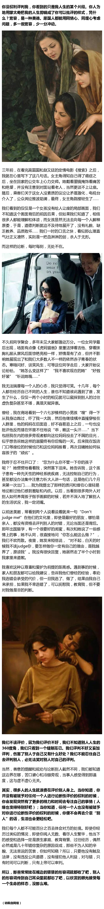 「你没权利批判我」一篇深度好文,希望每个人都花一点时间看完;如果每个人都能对身边的世界多一点关怀和理解,也许只许一丝小小的温暖,你便能怀抱这世界。