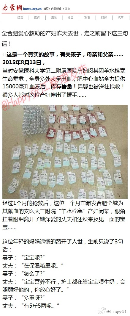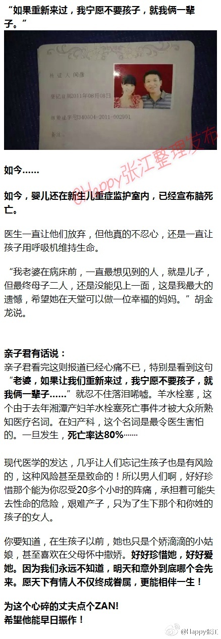 的故事!产 妇羊水栓塞死亡生前只留3句话,看哭了。。生孩子真的是在生死边缘徘徊,男生们都应该好好珍惜身边的那个ta,因为我们永远不知道,明天和意外到底哪个会先来