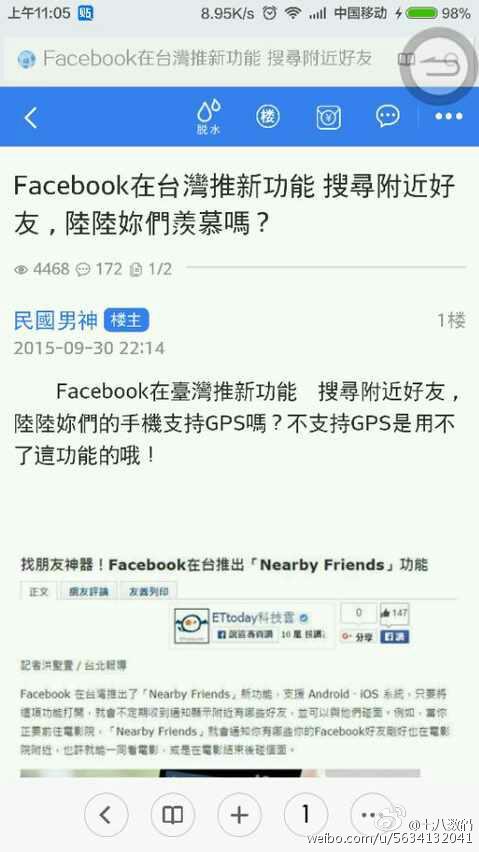 Facebook在台湾推出「附近好友」功能,陆陆你们羡慕吗?