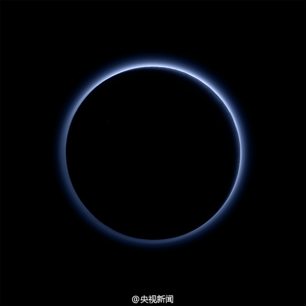 【冥王星上有“蓝天”】昨天,美国宇航局发布“新视野”号冥王星探测器发回的照片——冥王星上有“蓝天”。美国宇航局科学研究小组说,冥王星大气中的细小微粒本身可能是灰色或红色的,散射光线后呈现蓝色,所以冥王星就有了“蓝天”。有“蓝天”还有“爱心”,冥王星萌萌哒