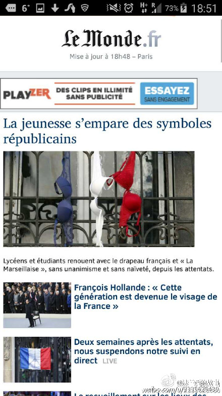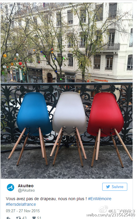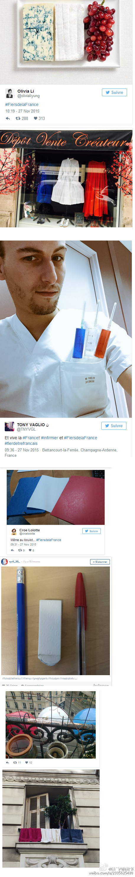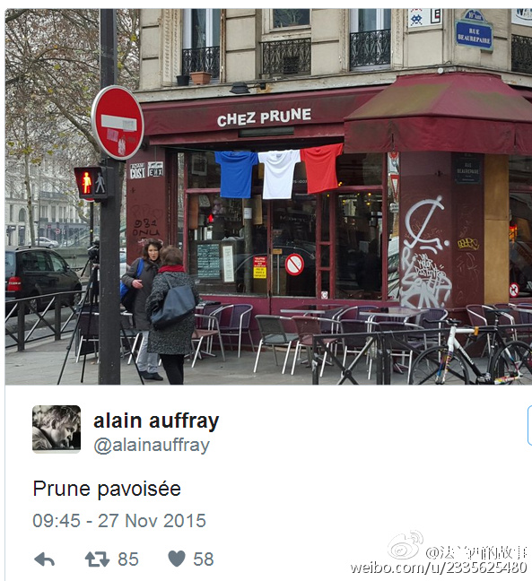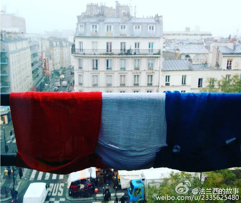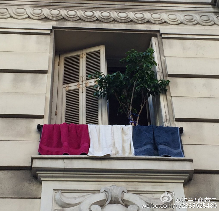 真的是买不到国旗了 ... 法国人爱起国来,也是很拼的 / 今天法国官方祭奠亡灵,号召每家每户挂国旗,结果国旗供不应求,于是浪漫而爱国的某些法国人民挂出了贴心的爱 ... (来自网络)