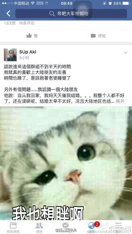 :觉得这次两岸青年文化交流成果甚佳,现在脸叔上一片祥和,两岸三地各种渗透交流,画风突变,宝宝只能跟着剧情走了。