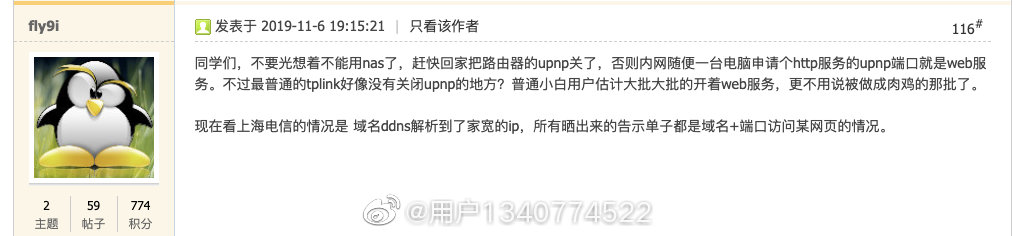 用户1340774522 :重拳打击私设 Web 服务 + 默认开启 UPnP 的小白级 TP-Link 路由器真的草生