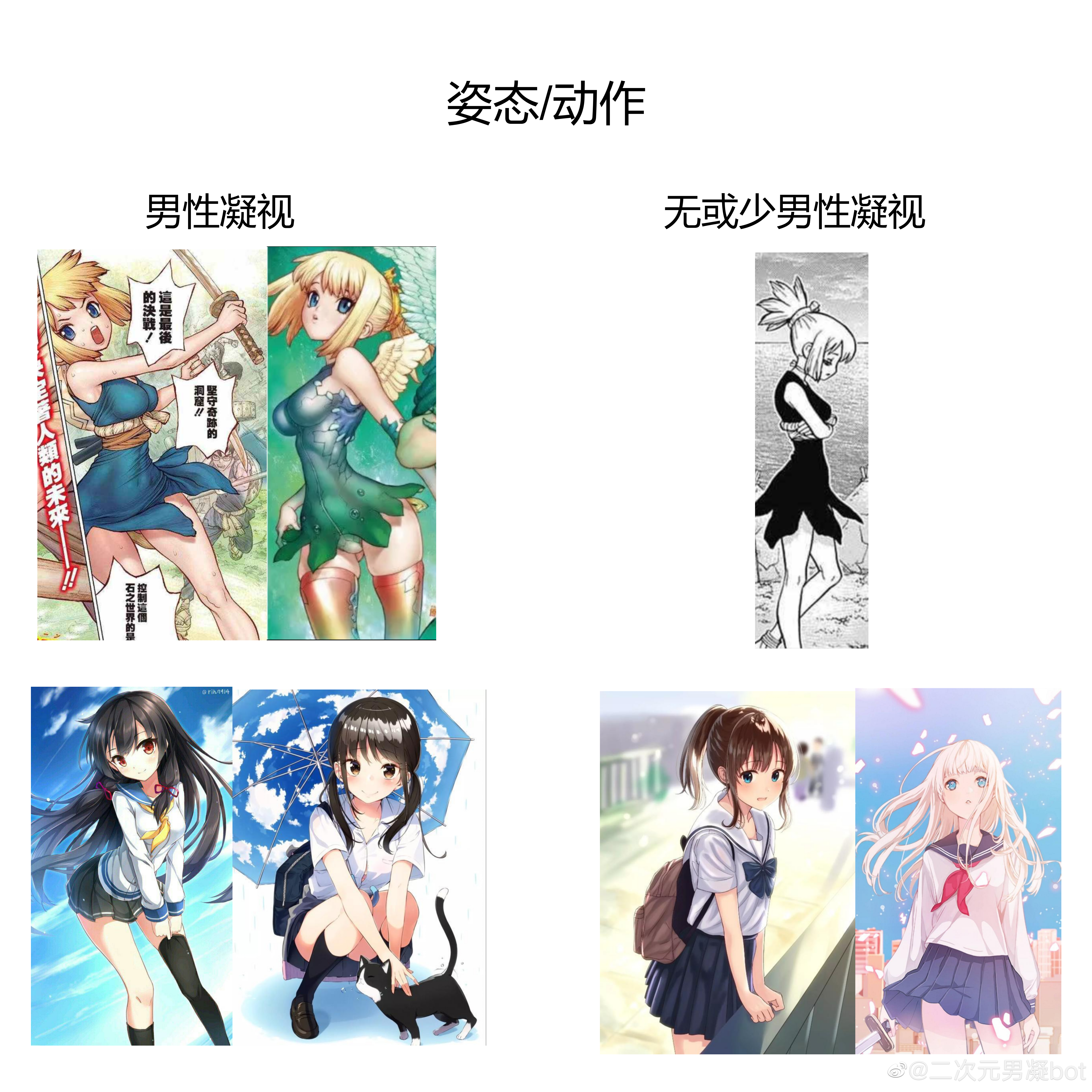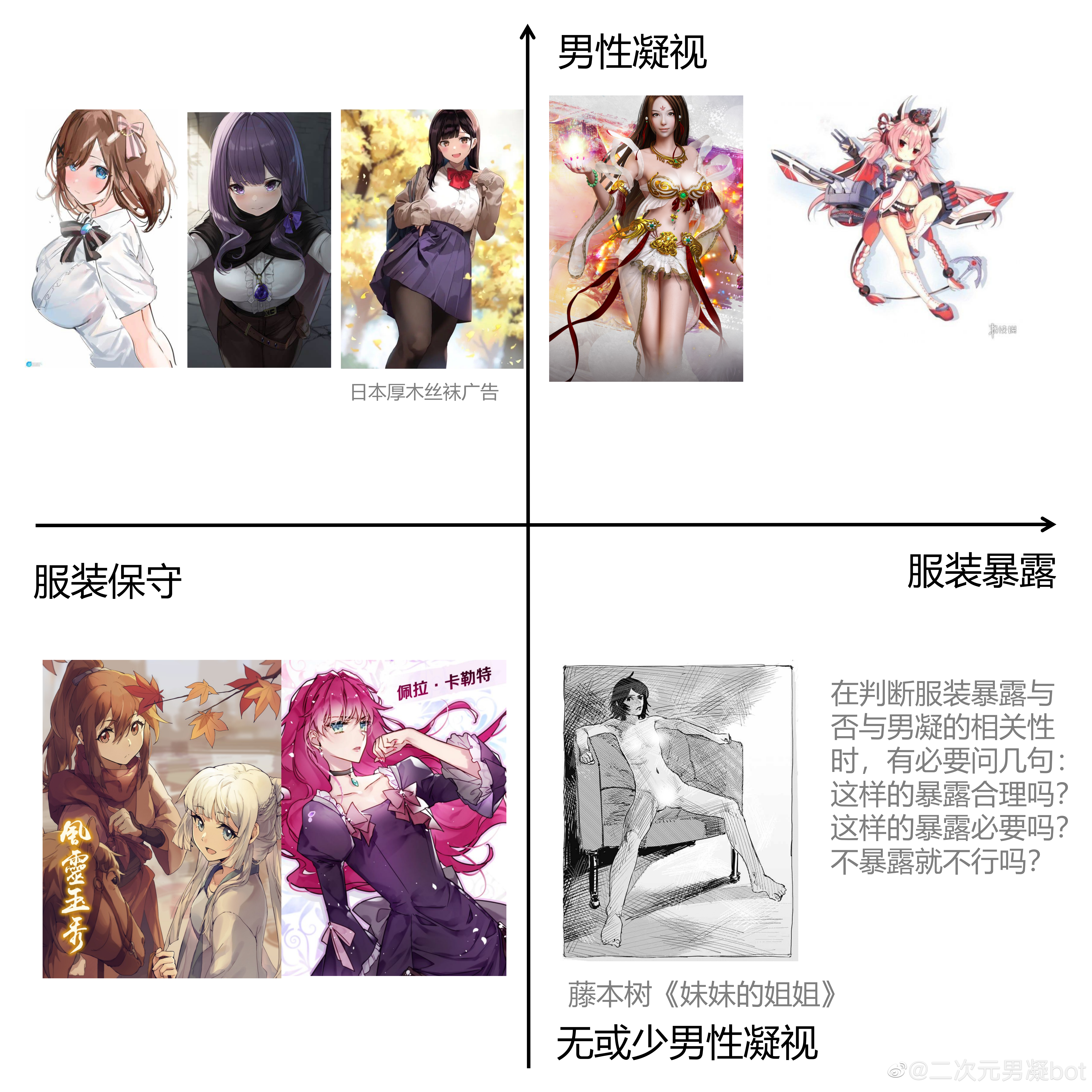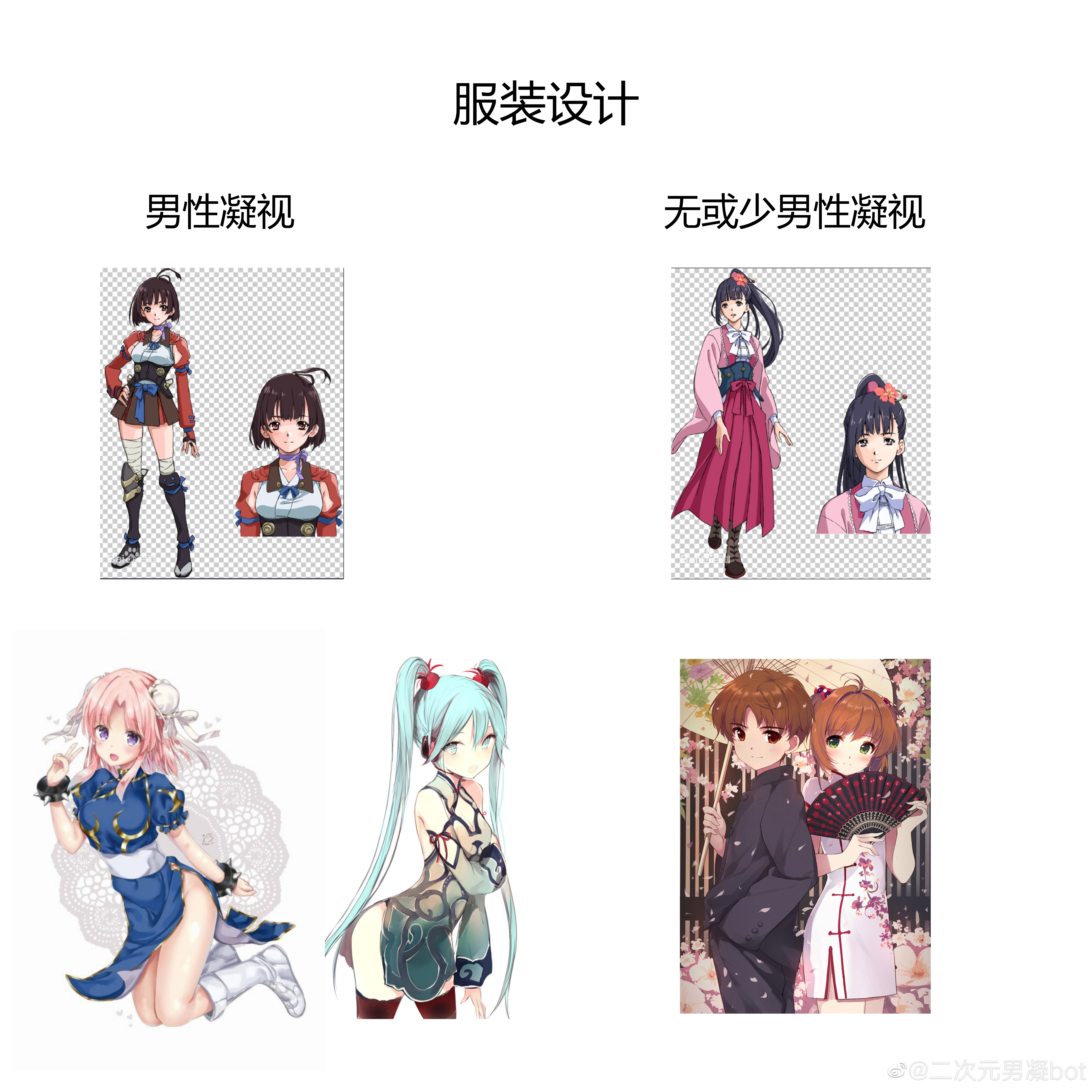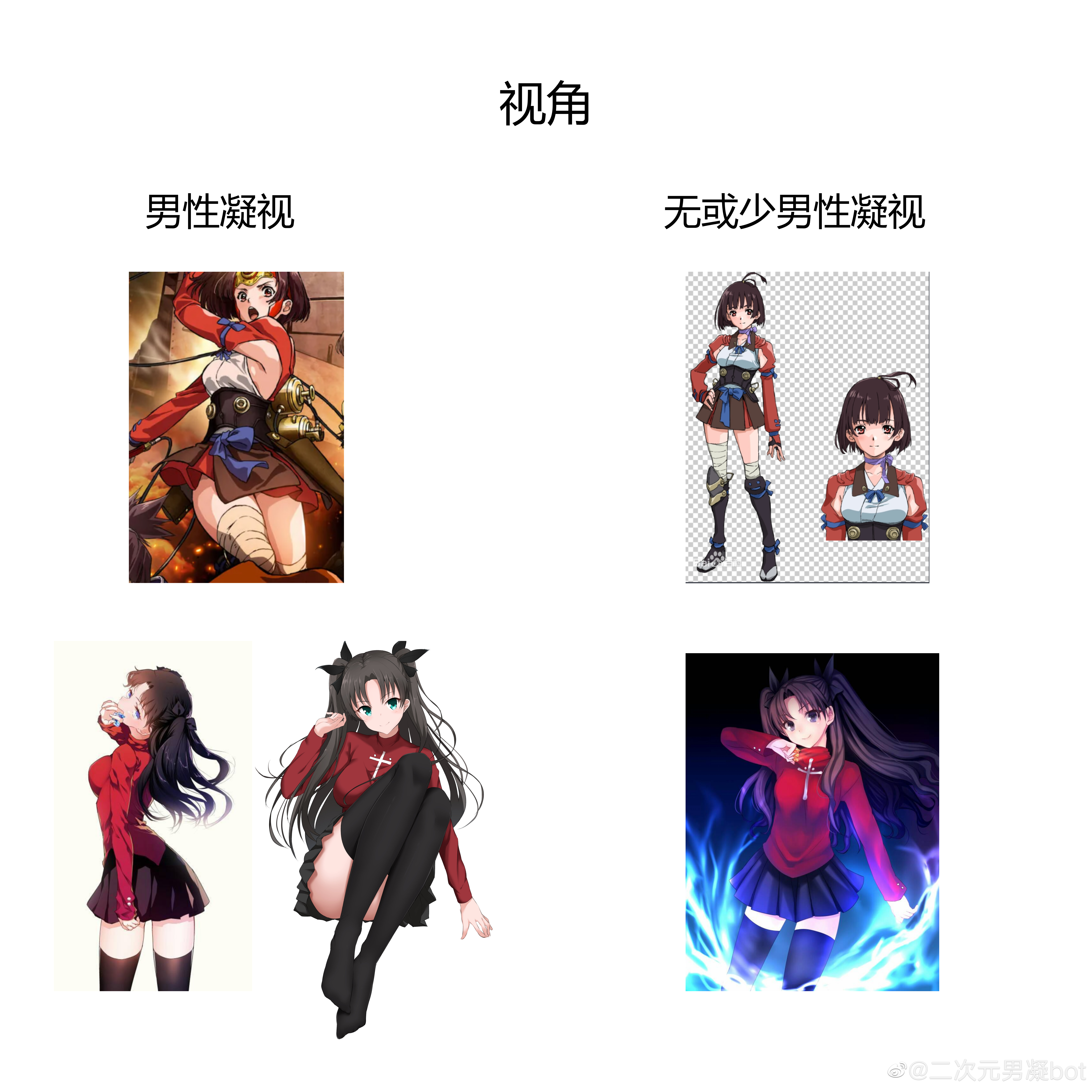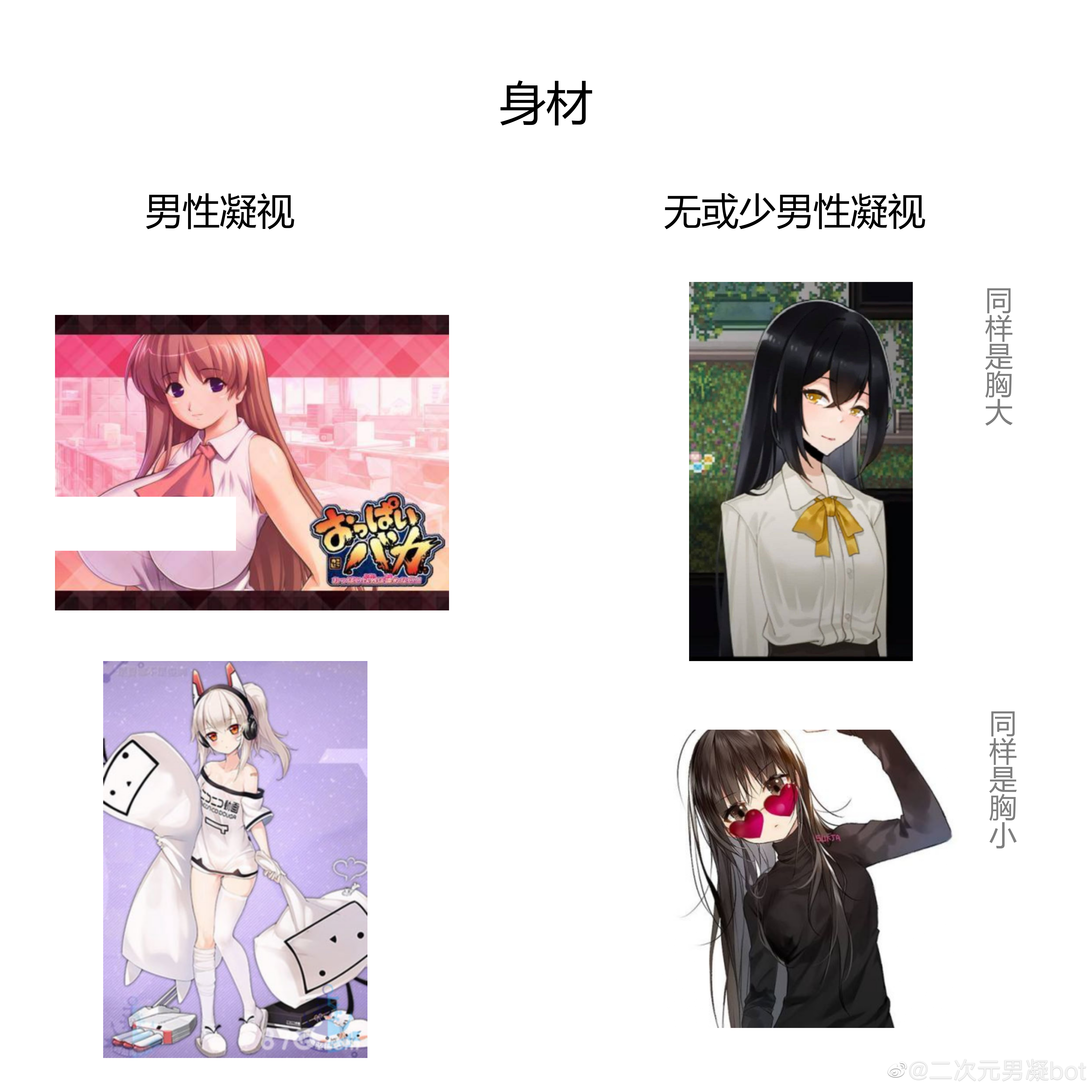 bot好,投几张图,关于男性凝视与二次元角色形象各方面的相关性。